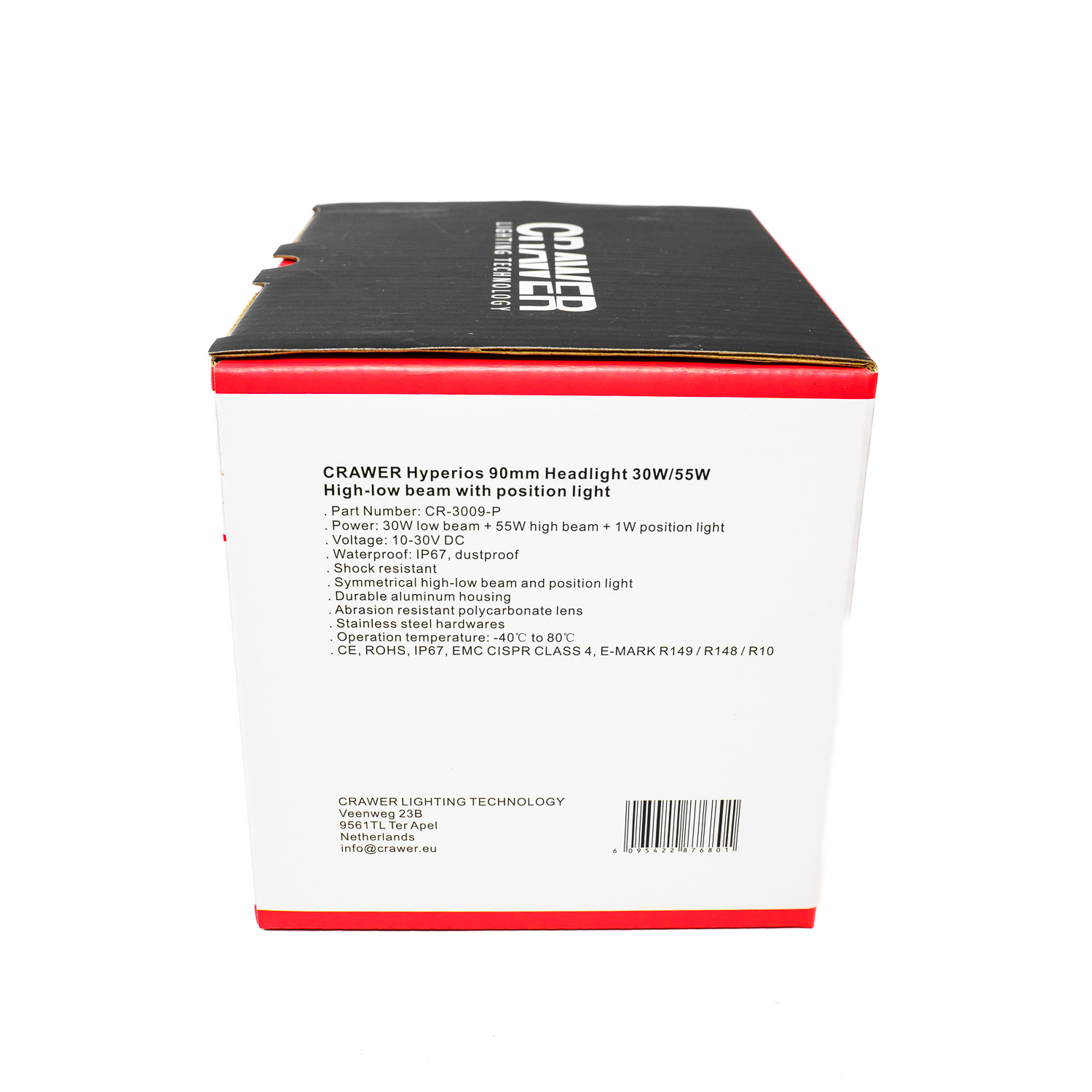 Le phare CRAWER Hyperios 90 mm CR-3009-P combine feux de croisement, feux de route et position HALO dans un format compact et puissant. Le halo périphérique offre une signature lumineuse moderne et une excellente visibilité, même de jour.