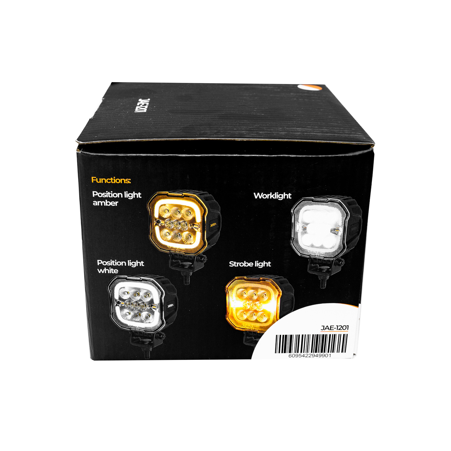Le JAEREN JAE-1201 est un phare de travail LED carré ultra-robuste, conçu pour les environnements agricoles, forestiers et industriels exigeants. Il combine un éclairage de travail puissant, un feu de position bicolore et un gyrophare orange intégré.
