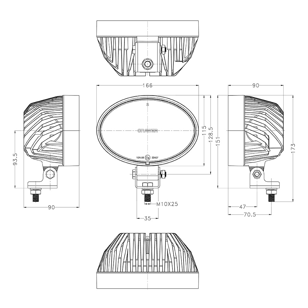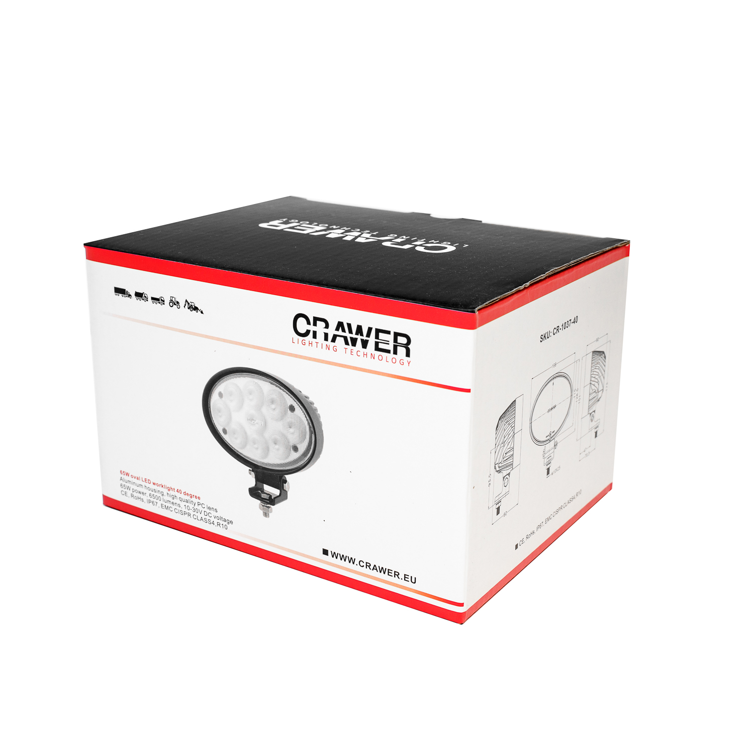 Phare de travail LED ovale CRAWER 65W – 6500 lumens – Faisceau large 40° – CR-1037-40