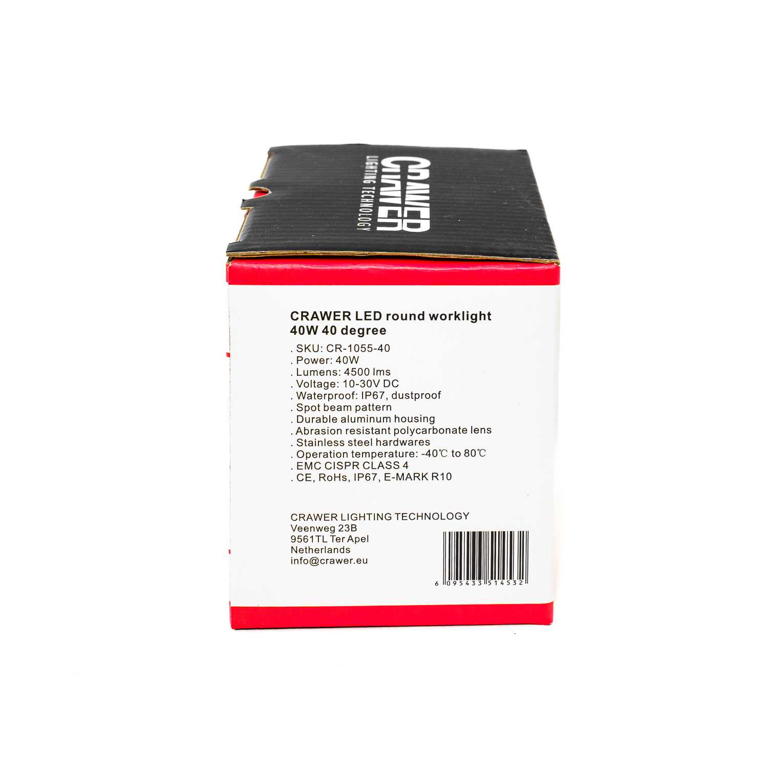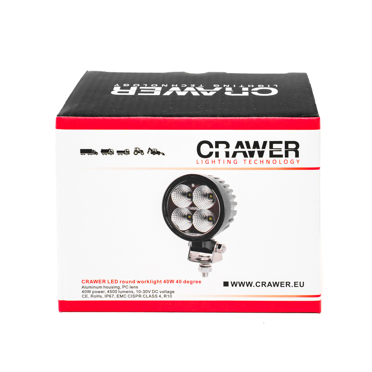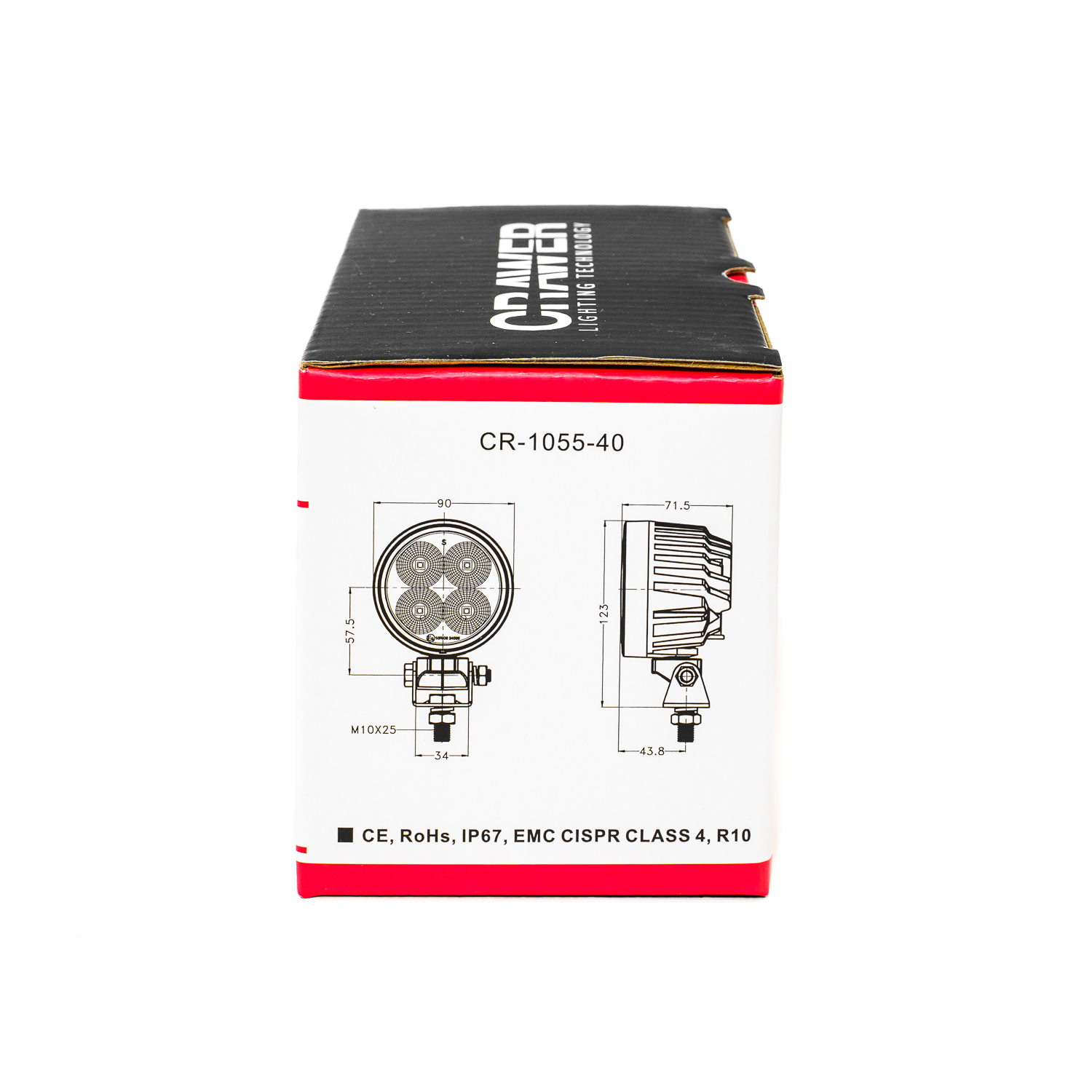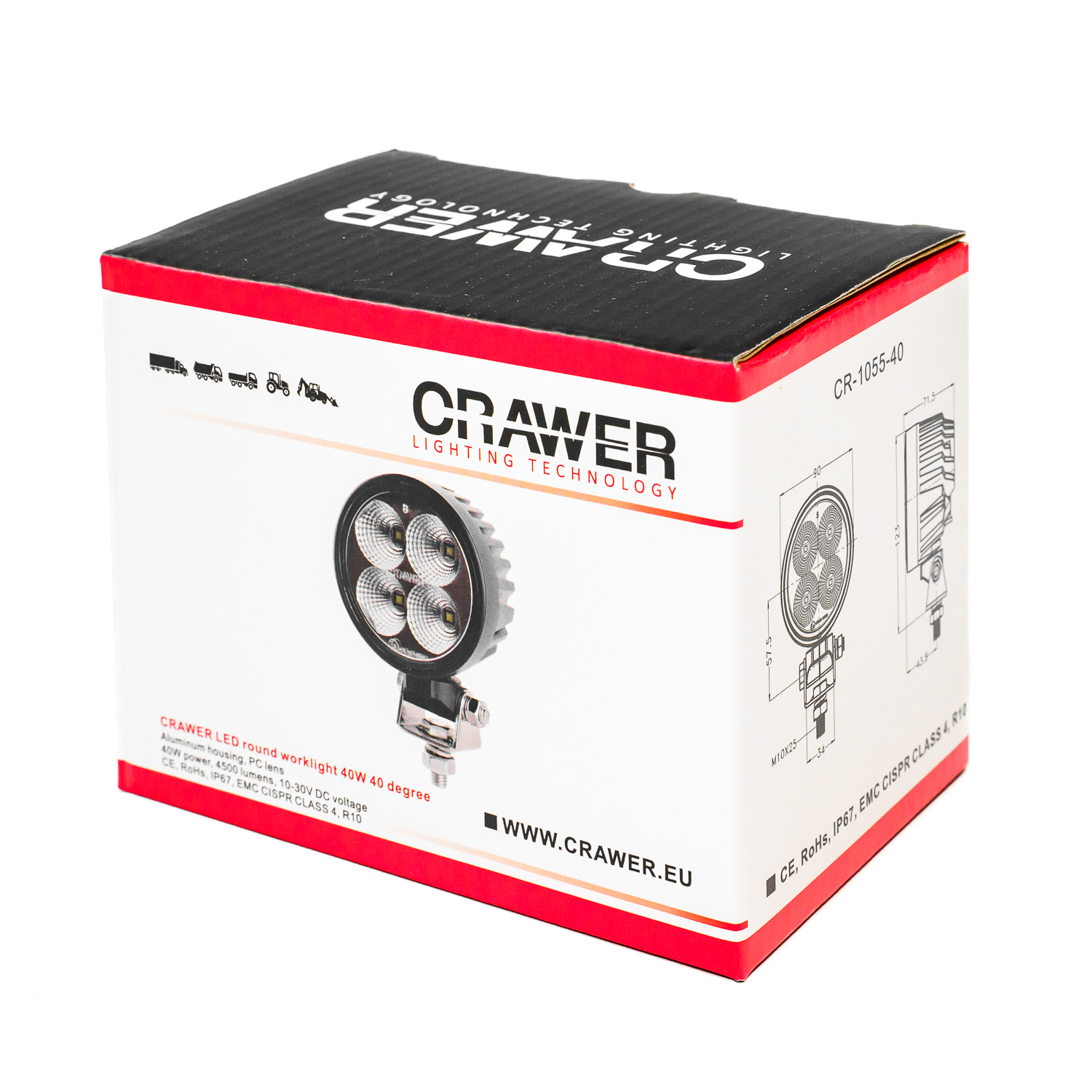Le CRAWER CR-1055-40 est un projecteur LED rond de 40W conçu pour offrir un éclairage puissant et homogène. Il remplace l’ancien modèle CRW3030, avec une intensité lumineuse augmentée de 3000 à 4500 lumens et un design modernisé avec une face avant chromée adaptée aux lignes des nouveaux tracteurs.